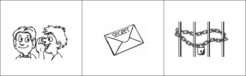 Write a composition of at least 150 words about a secret. The pictures are provided to help you think about the topic. Your composition should be based on one or more of these pictures.