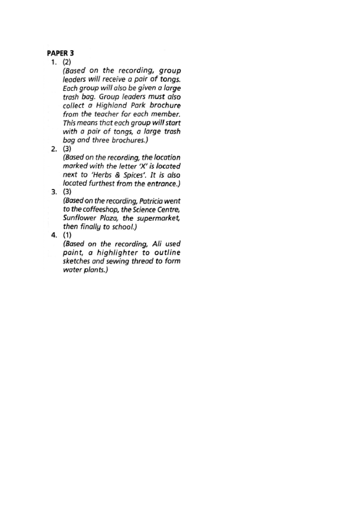 Answer Key - PSLE 2024 English Language Listening Comprehension Paper ( Free Online )