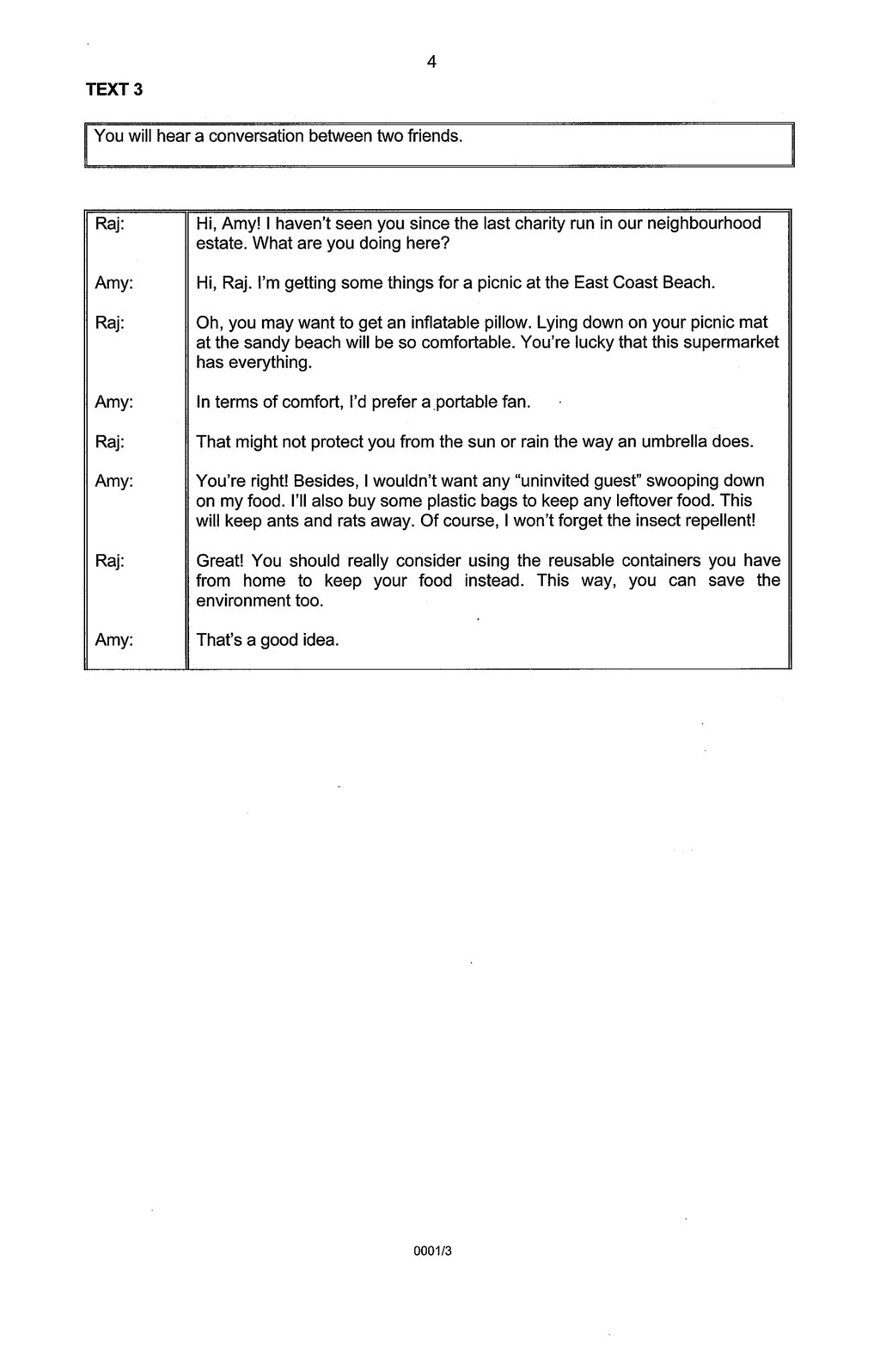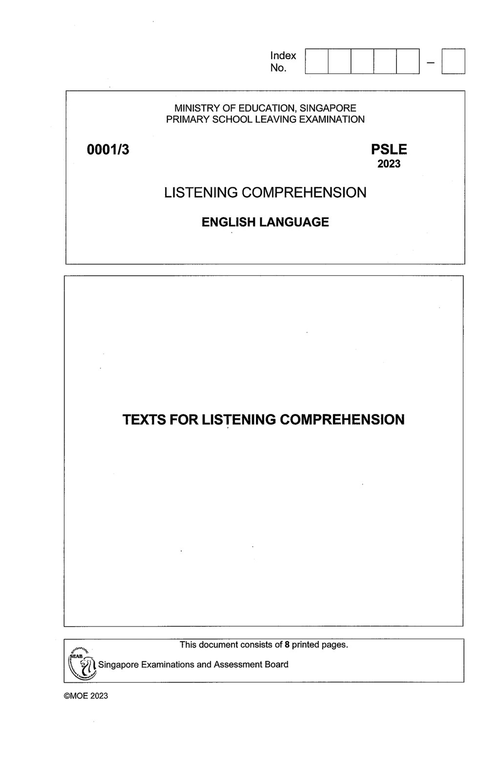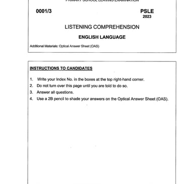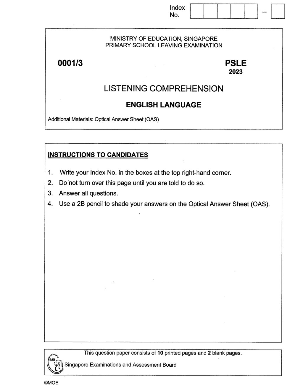 PSLE 2023 English Language Listening Comprehension Paper ( Free Online )