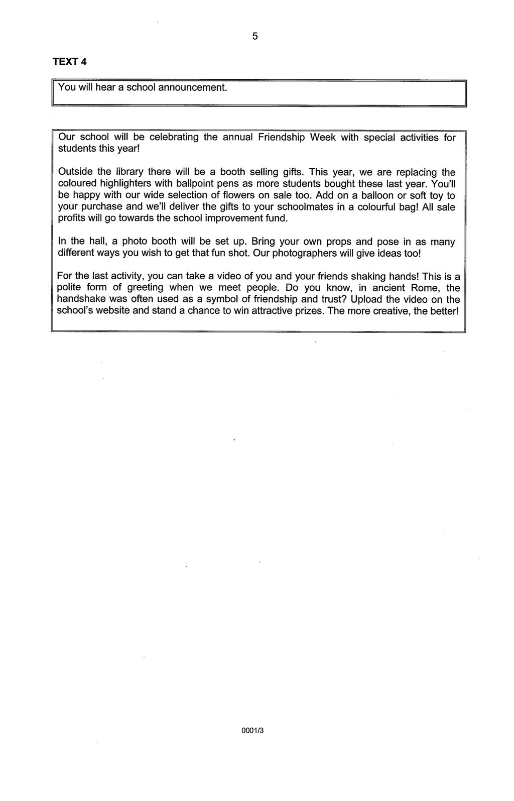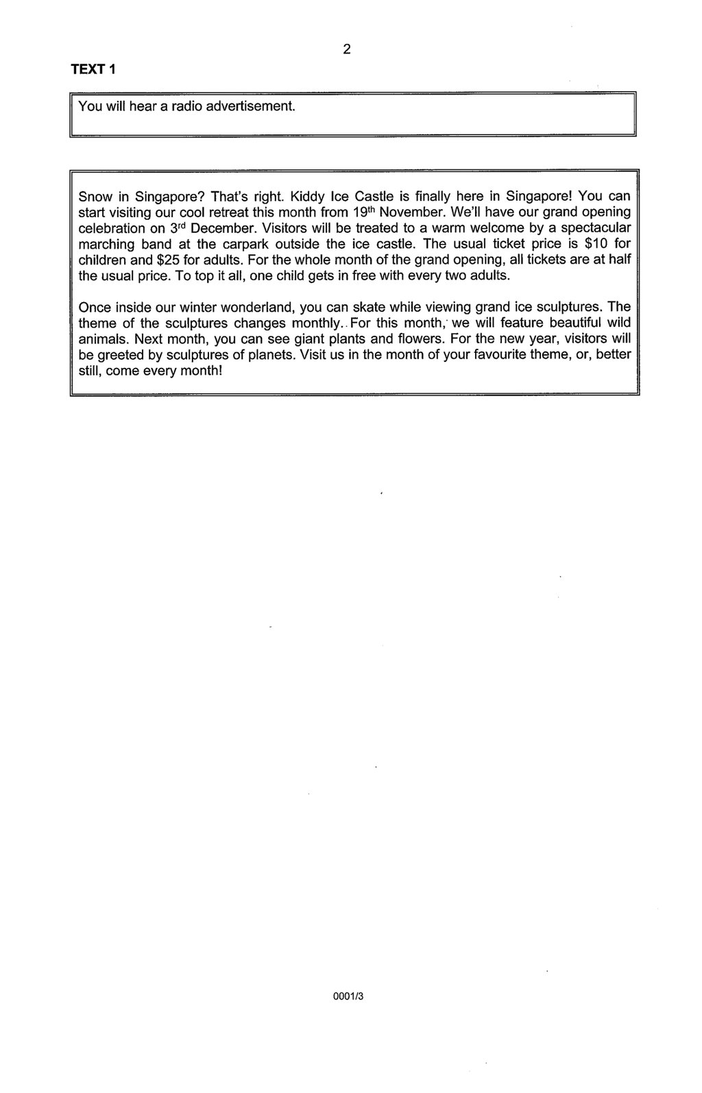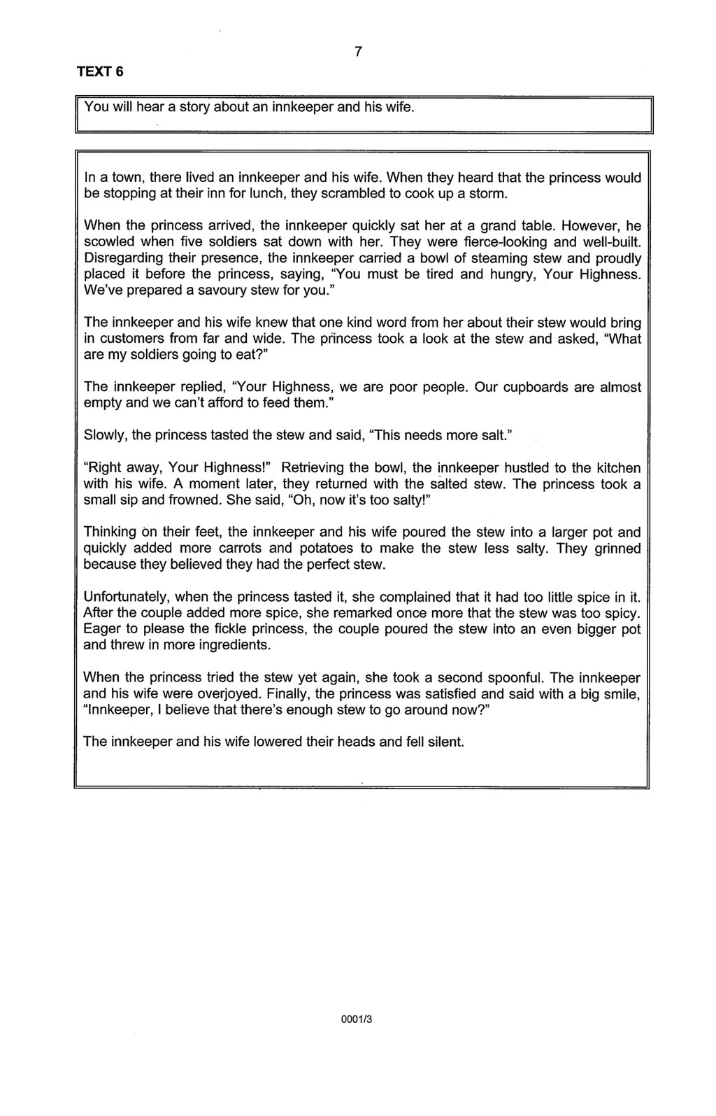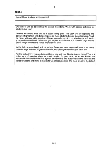 PSLE 2023 English Language Listening Comprehension Paper ( Free Online )
