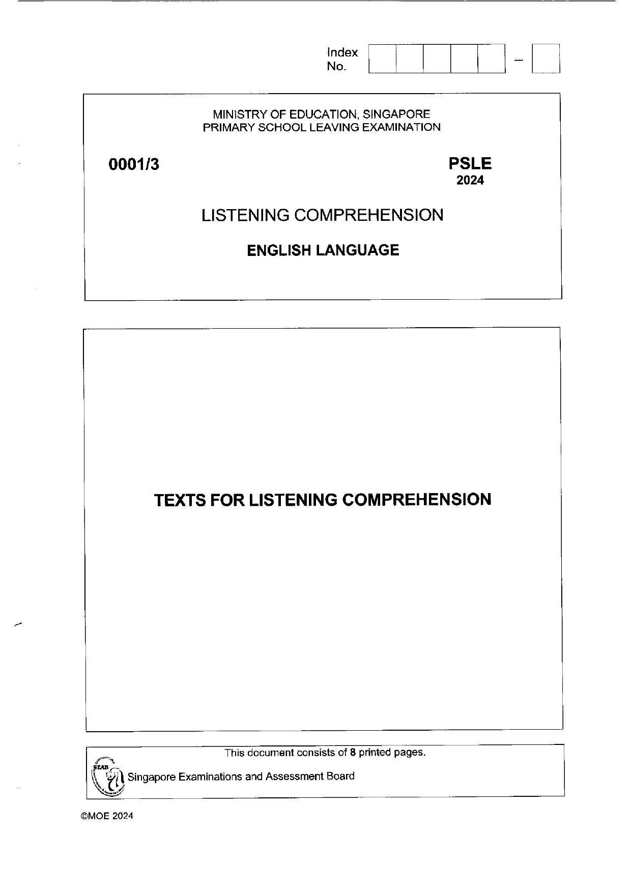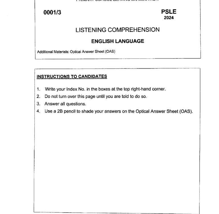 PSLE 2024 English Language Listening Comprehension Paper ( Free Online )