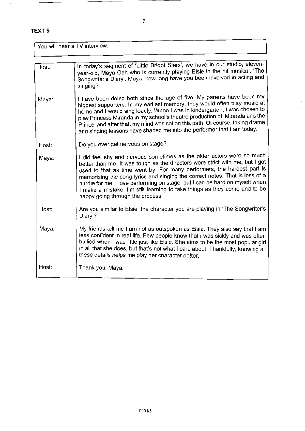 P6 LISTENING COMPREHENSION