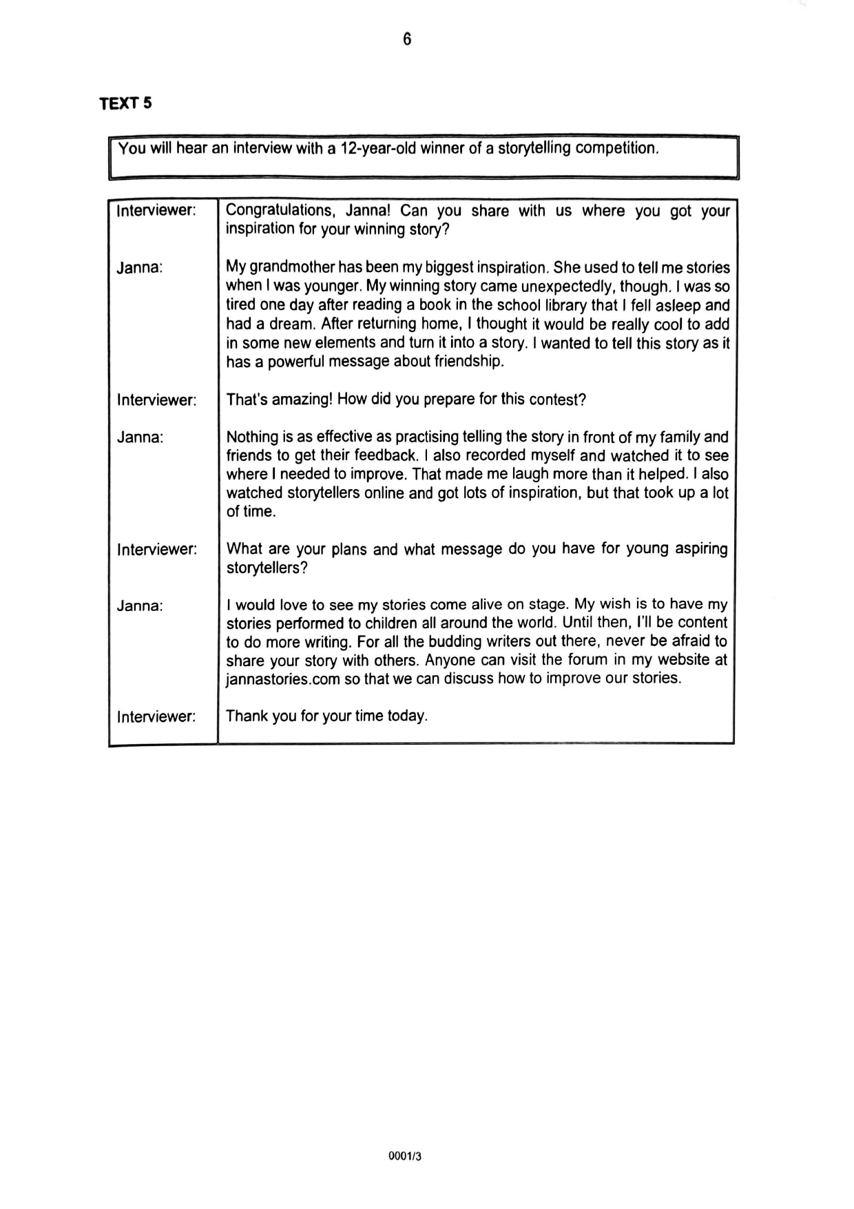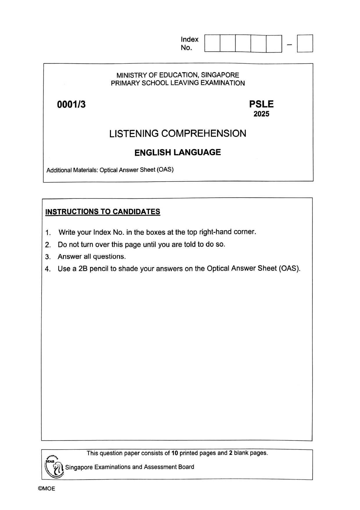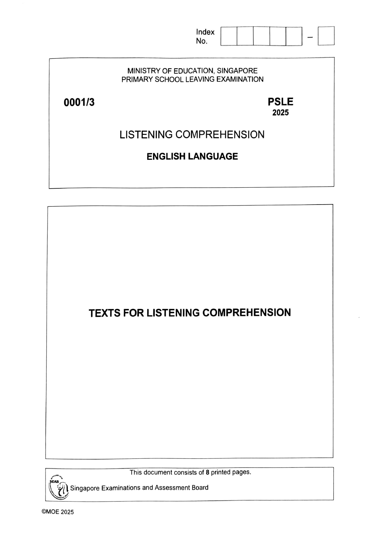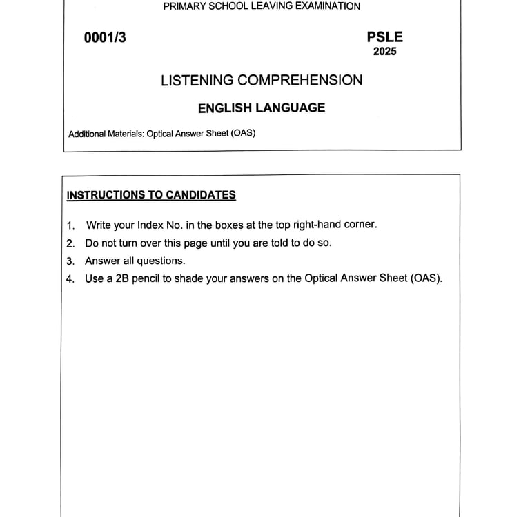 PSLE 2025 English Language Listening Comprehension Paper ( Free Online )